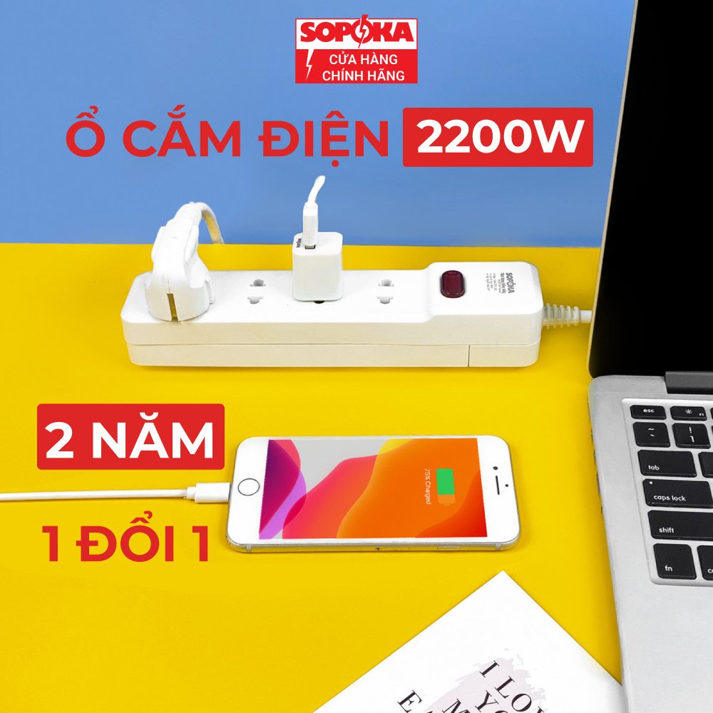 Giới thiệu [Mã BMBAU50 giảm 10% đơn 99k] Ổ Cắm Điện Chịu Tải 2200W SOPOKA 3M2-6M2 Ổ Điện Công Tắc An Toàn