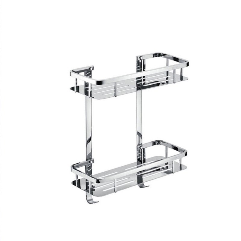 Kệ vuông nhà tắm hai tầng có móc inox sus 304