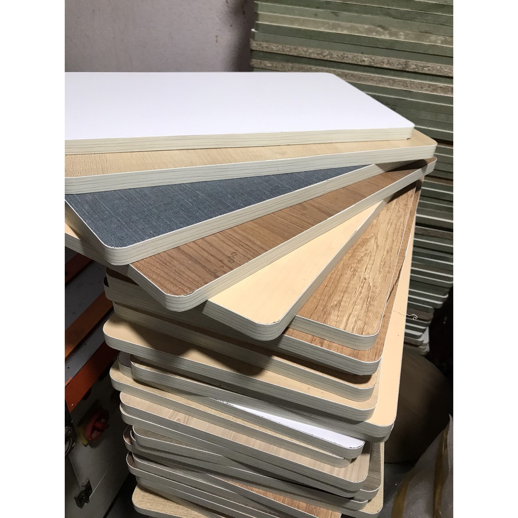 Mặt bàn là ván MDF, dày 18mm, được phủ Melamin 2 mặt, với nhiều màu vân gỗ sáng và tối. Bạn có thể liên hệ trực tiếp với Shop để chọn Mặt Bàn màu ưng ý nhé.