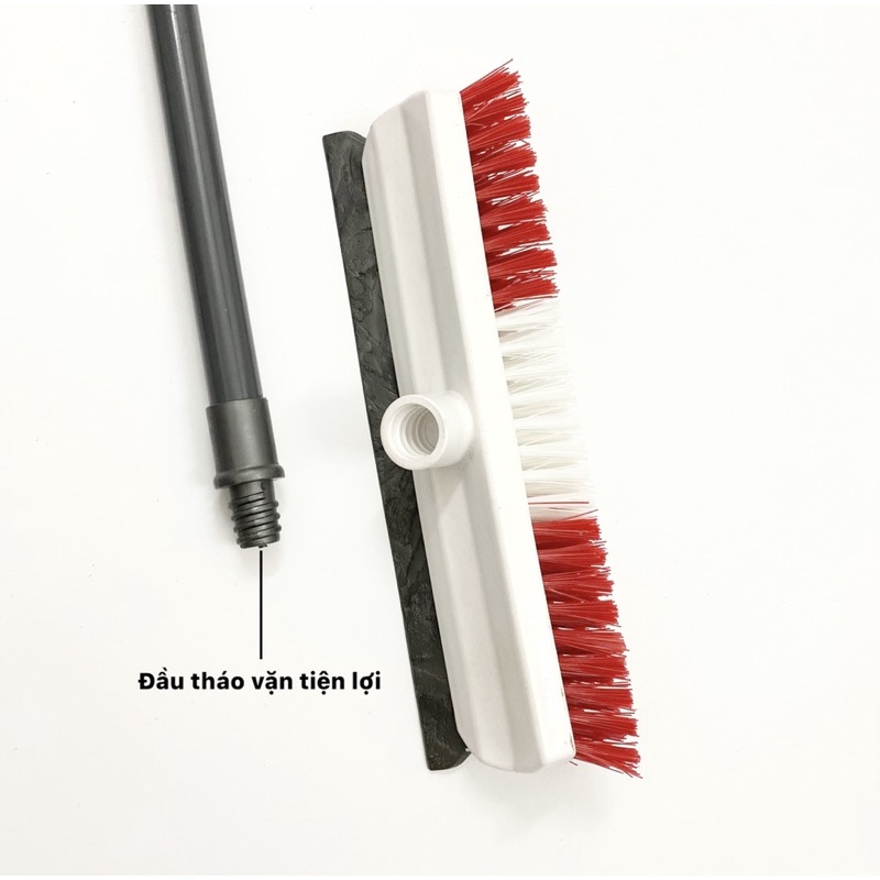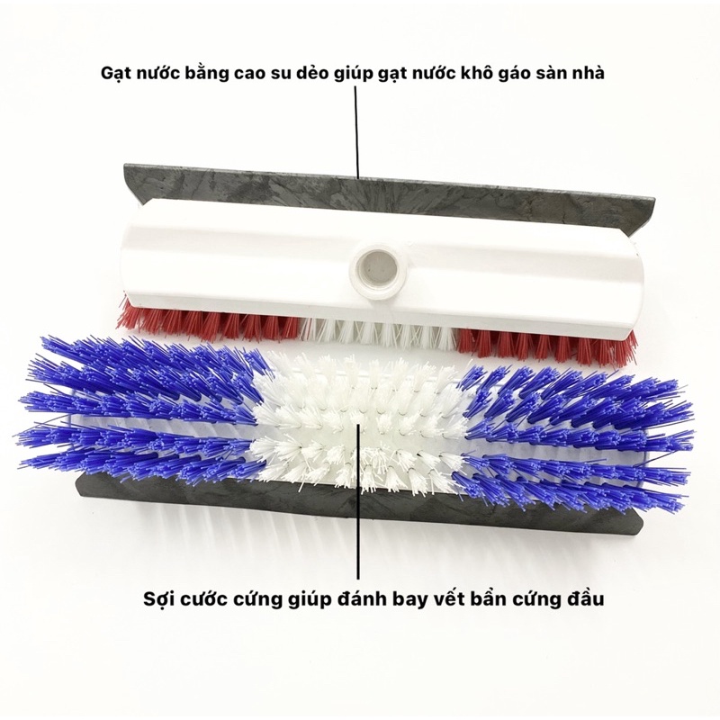 - Cây chà sàn với thiết kế thông minh 2 trong 1 tích hợp bàn chải chà sàn và đầu cao su gạt nước giúp bạn nhẹ nhàng lau sạch mọi vết bẩn trên sàn hay các ngõ ngách, góc nhà và gạt khô nước một cách sạch sẽ và nhanh chóng.