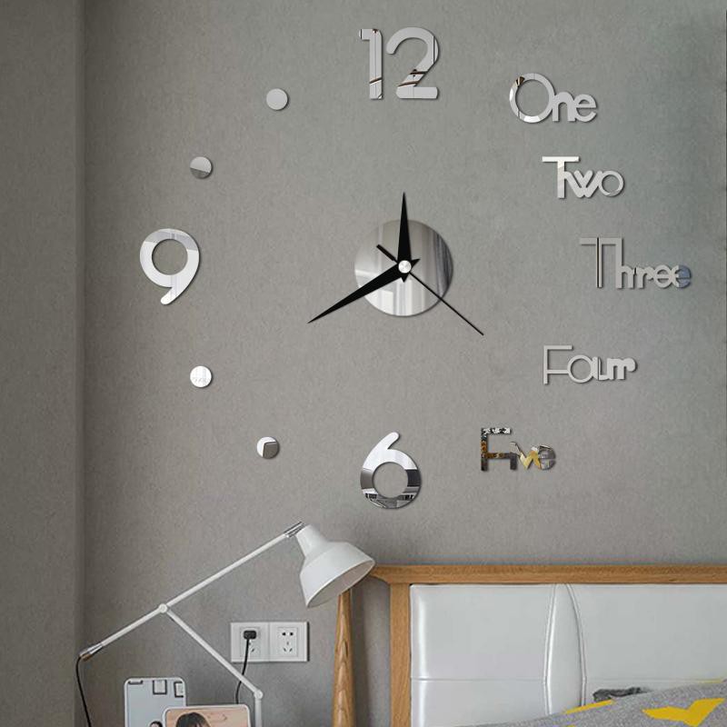 - Chiếc đồng hồ dán tường LOẠI LỚN tự làm này được thiết kế với bộ số bằng nhựa tráng gương và xốp cao cấp bộ kim bằng thép không gỉ lớn; bộ máy riêng. Và LOẠI NHỎ được làm bằng chất liệu Acrylic mạ ánh kim bên trong (sáng bóng như gương không phai mà có sẵn keo dán ở 1 mặt). Với các bộ phận tách rời giúp bạn có thể lắp đặt ở bất cứ vị trí nào trong nhà theo phong cách riêng của mình