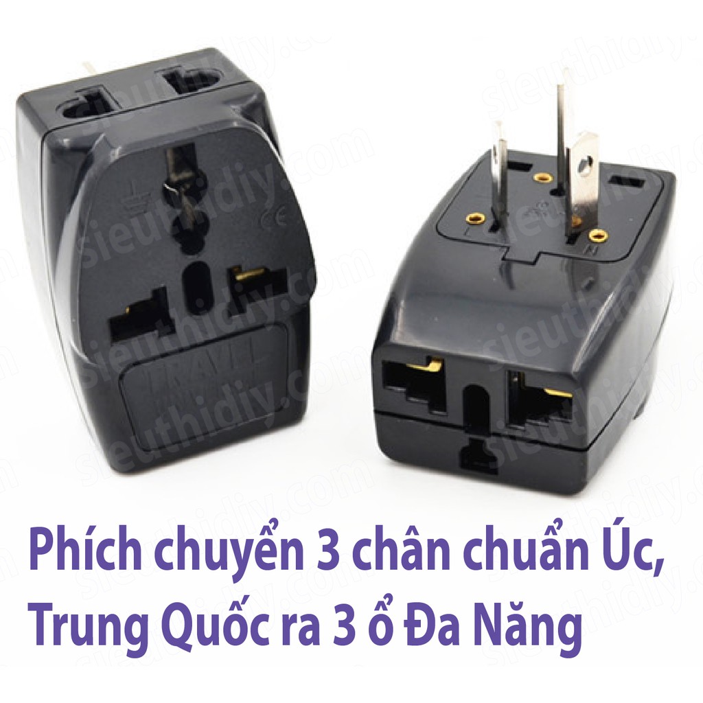 Nhà cửa & Đời sống > Dụng cụ & Thiết bị tiện ích > Dụng cụ > Khác || Phích chuyển ổ Úc, TQ 3 chân dẹt chéo ra ổ cắm Đa NăngCòn hàng