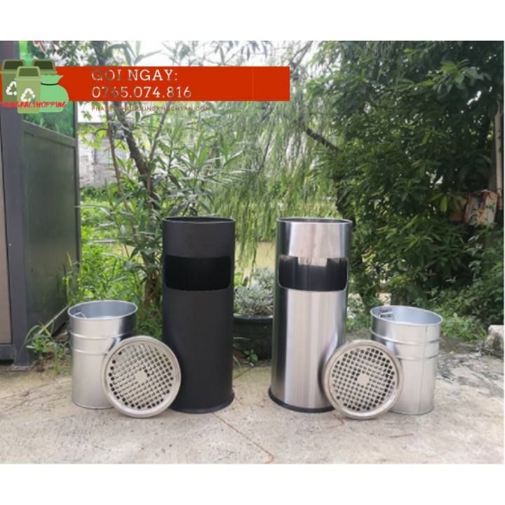 Nhà cửa & Đời sống > Dụng cụ chăm sóc nhà cửa > Thùng rác || Thùng rác Inox gạt tàn thuốc tròn, Thùng rác gạt tàn văn phòngCòn hàng
