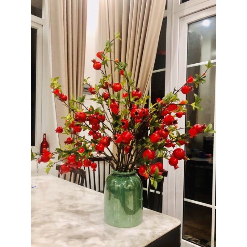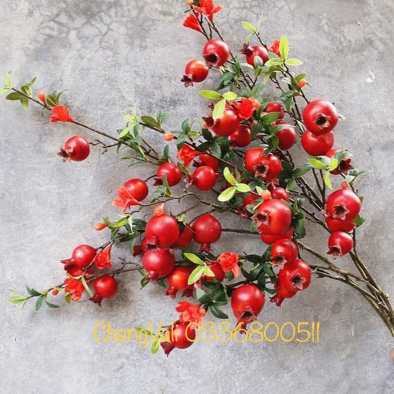Cành lựu giả dùng trang trí nội thất, trang trí studio, spa,Cành quả lựu là biểu tượng của sự sung túc, no ấm, là món quà tân gia hay khai trương đầy ý nghĩa.