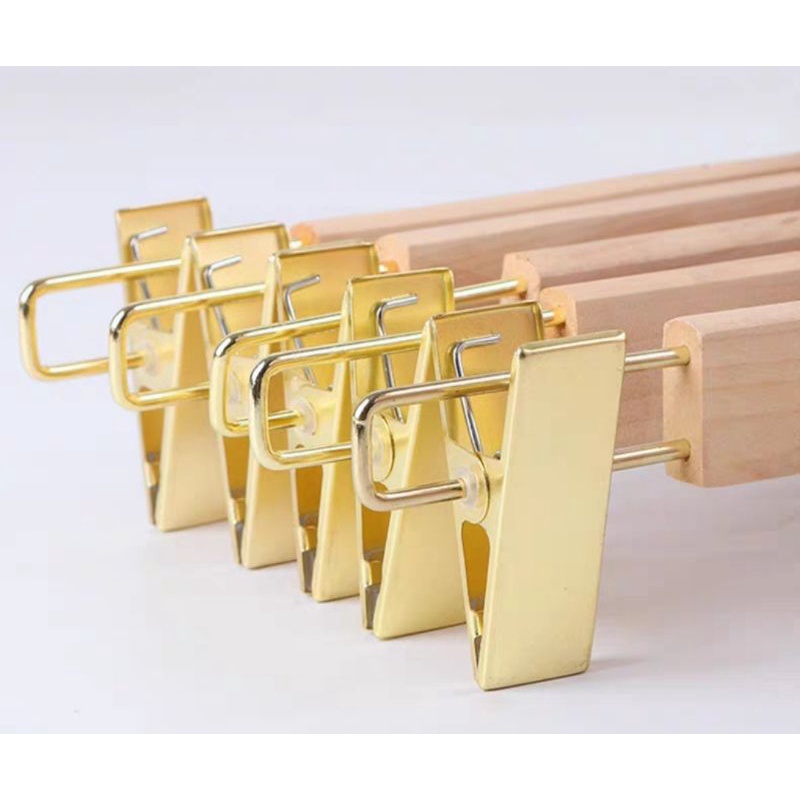 móc treo quần áo, mắc kẹp quần gỗ mộc mạ vàng chuyên chụp ảnh đẹp cho shop thời trang