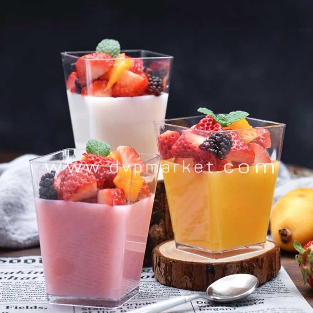 Nhà cửa & Đời sống > Dụng cụ nhà bếp > Dụng cụ nướng & trang trí bánh || Ly nhựa bánh mousse hình vuông 5,7 x 7,5cm BN24 (25 cái kèm nắp)Còn hàng