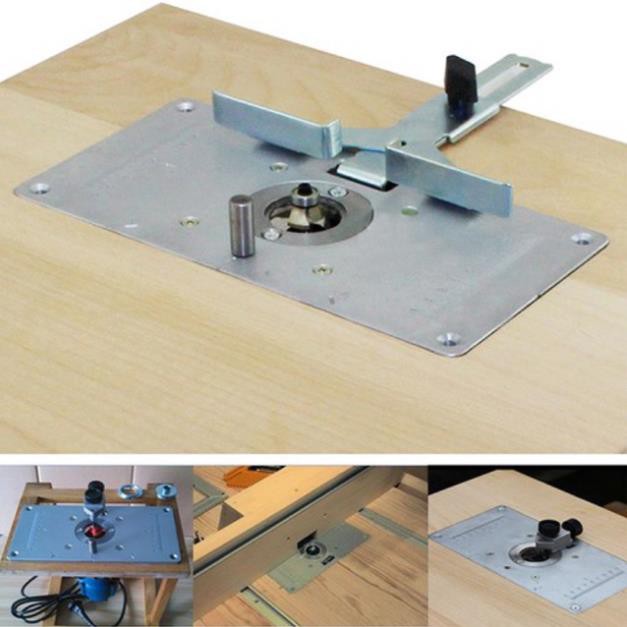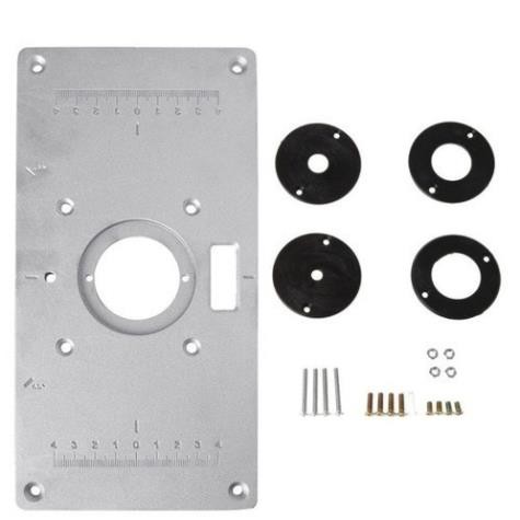 Tấm Gá Chế Máy Phay Bàn Cốt NhỏMột bộ dụng cụ chế biến gỗ bao gồm 1 tấm chèn bảng định tuyến, 4 vòng chèn Bộ định tuyến và một số ốc vít cố định.