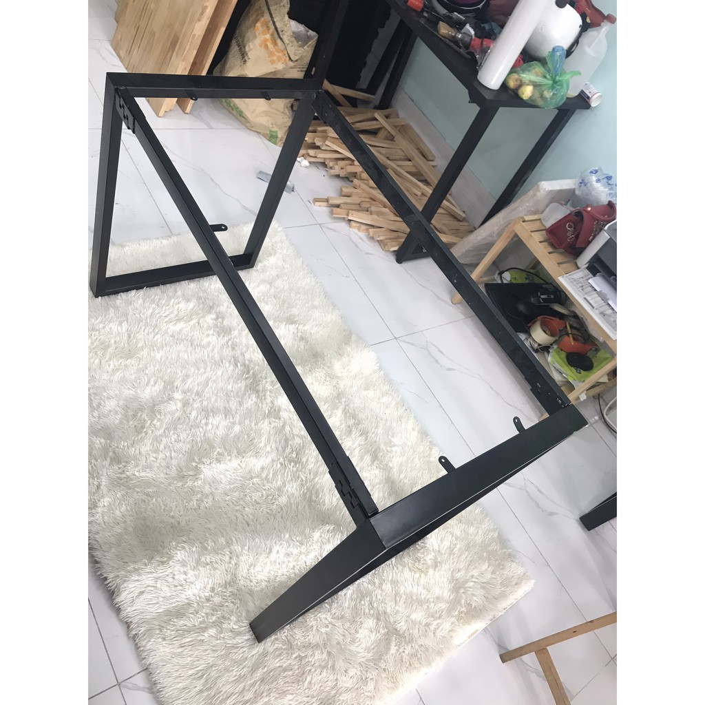 Khung chân: Ráp ngàm sắt 2,5cm x 5cm , dày dặn, chắc chắn, được sơn đen tĩnh điện chống rỉ sét. Chịu lược 60-70kg.