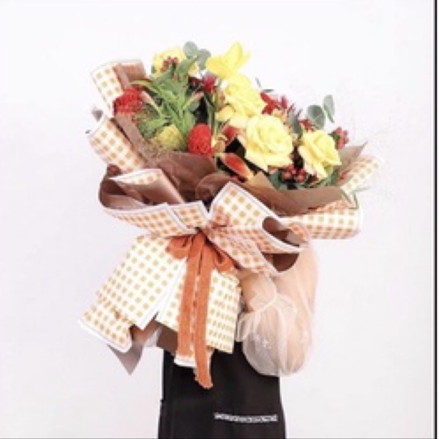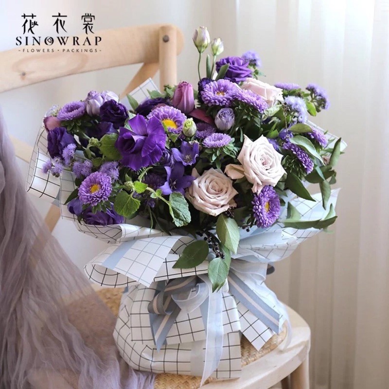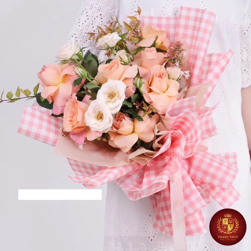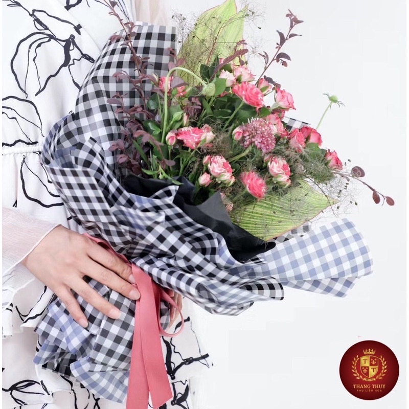 tập 20 tờ mika kẻ ô dùng để gói hoa tươi , hoa sáp , hoa lụa đều cực sang chảnh luôn nhékích thước ; 60*60cm