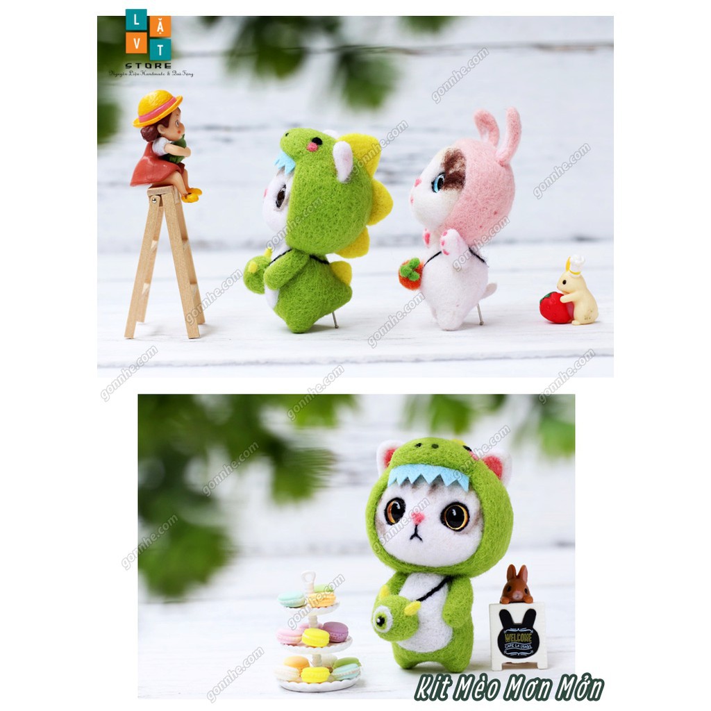Sở thích & Sưu tầm > Dụng Cụ May Vá || Bộ len chọc có hướng dẫn Mèo Mơn Mởn - Kit chọc len làm quà tặng, needle felting catCòn hàng