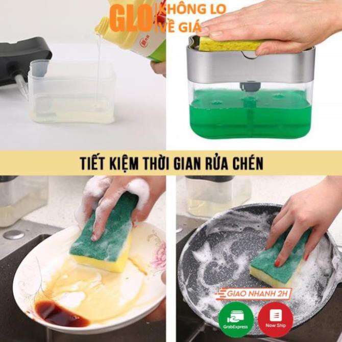Hộp Đựng Nước Rửa Chén Bát Đa Năng, Tiện Lợi Có Vòi Hút, Tặng Kèm Miếng Rửa Chén