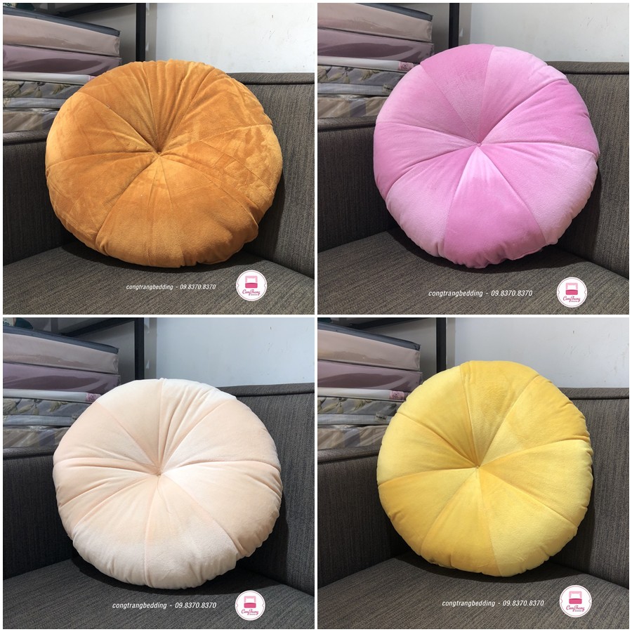 Đệm Ngồi Bệt Hình Tròn Kiểu Dáng Sang Trong (Bông Trắng Cực Êm)Sản phẩm đệm gối tựa lưng trang trí với thiết kế dạng quả bí, màu sắc đa dạng phù hợp nhiều phong cách vừa trẻ trung cá tính mà vẫn hiện đại, đơn giản, thích hợp trang trí phòng khách, phòng ngủ, ghế sofa,... Chất liệu vỏ gối tựa lưng bằng nhung cao cấp, và lõi bông PP chống xẹp, giúp đệm gối tựa lưng trang trí luôn giữ được phom dáng và đặc biệt vẫn có sự mềm mại, an toàn cho da người sử dụng.