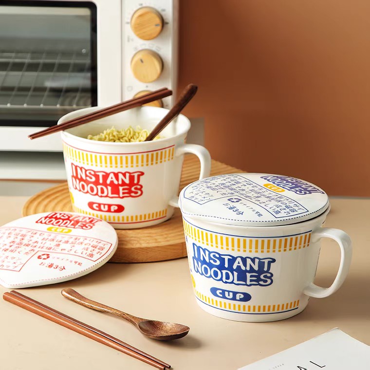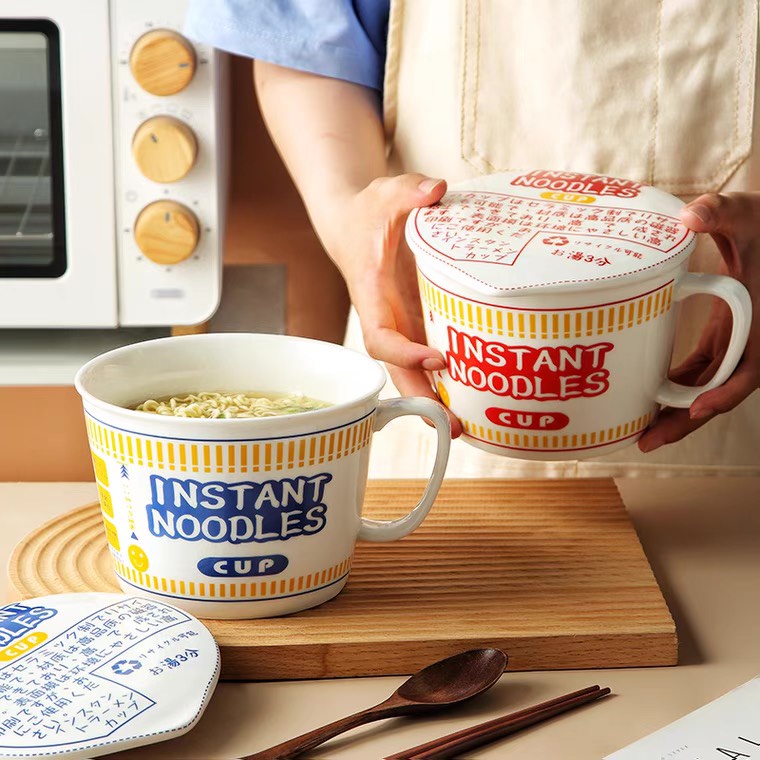 Nhà cửa & Đời sống > Bộ đồ bàn ăn > Tô || (HOT) Cốc ăn mì có nắp kiểu Nhật, quai cầm tiện lợi - Tô mì sứ cao cấp không chìCòn hàng