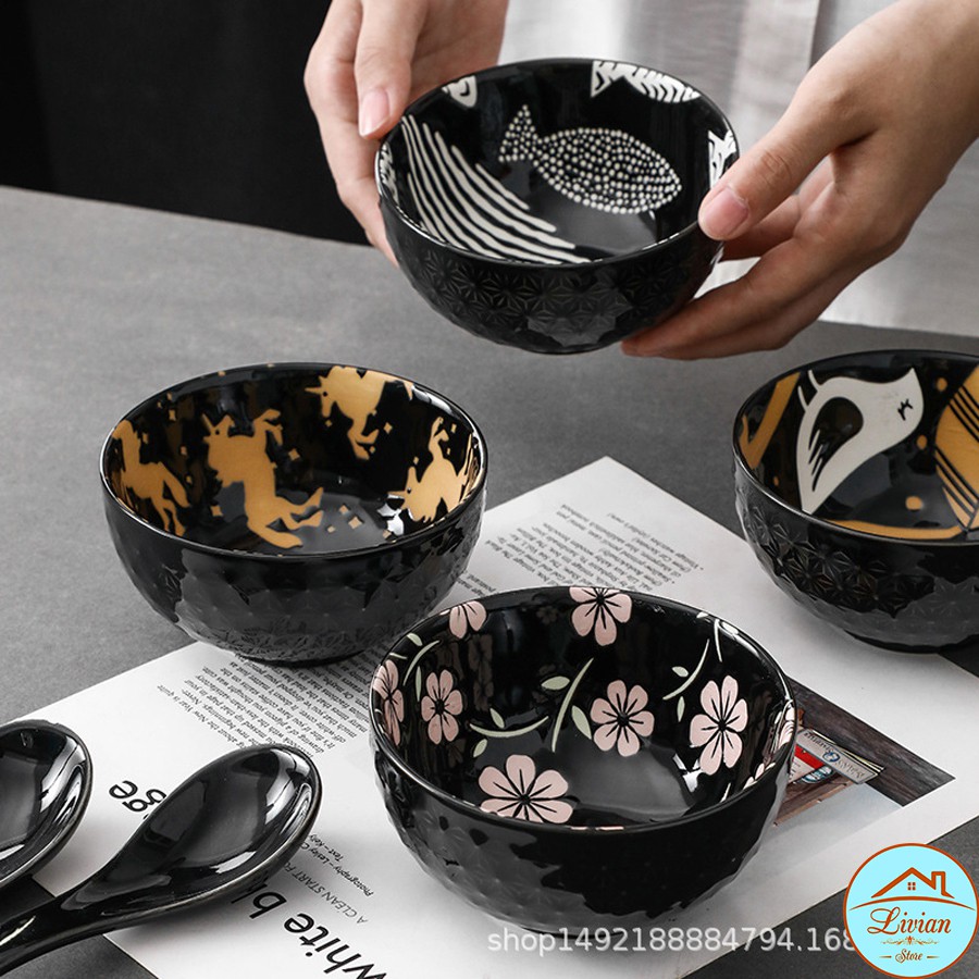Nhà cửa & Đời sống > Bộ đồ bàn ăn > Tô || Bát ăn cơm, bát ăn dặm bằng sứ có vân chống trơn họa tiết hoa lá, ngựa và cá cực xinhCòn hàng