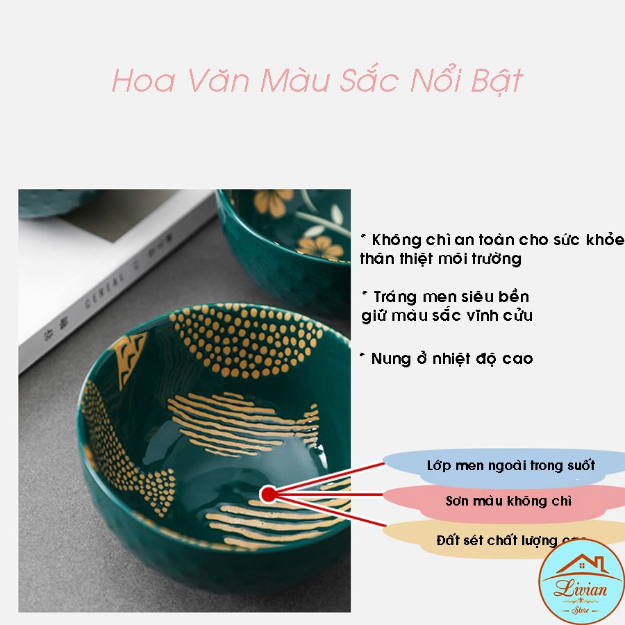 Bát ăn cơm, bát ăn dặm bằng sứ có vân chống trơn họa tiết hoa lá, ngựa và cá cực xinh