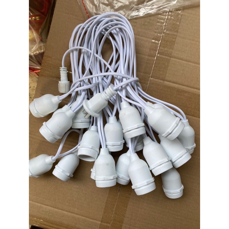 Nhà cửa & Đời sống > Dụng cụ chăm sóc nhà cửa > Dây phơi & giá phơi quần áo || Dây đui 10m 20 đui như hình dây màu trắng chống nướcCòn hàng
