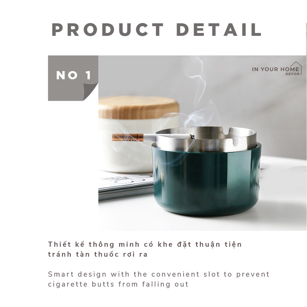 -Thiết kế thông minh có khe đặt thuận tiện và chiều cao hợp lý để tránh tàn thuốc rơi ra.