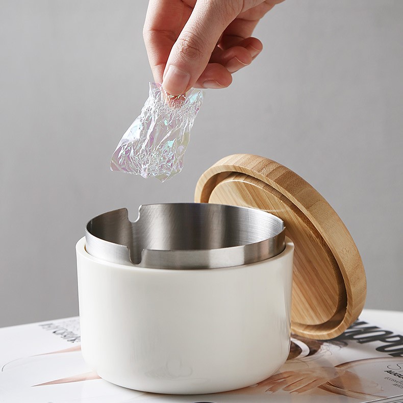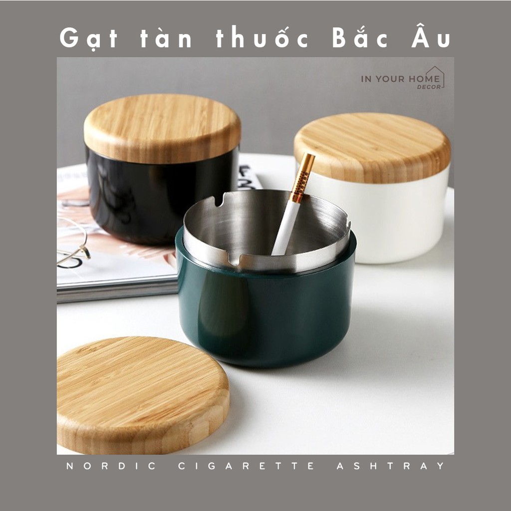 -Gạt tàn Bắc Âu được chế tác bằng vật liệu thép không gỉ và có nắp đậy bằng gỗ