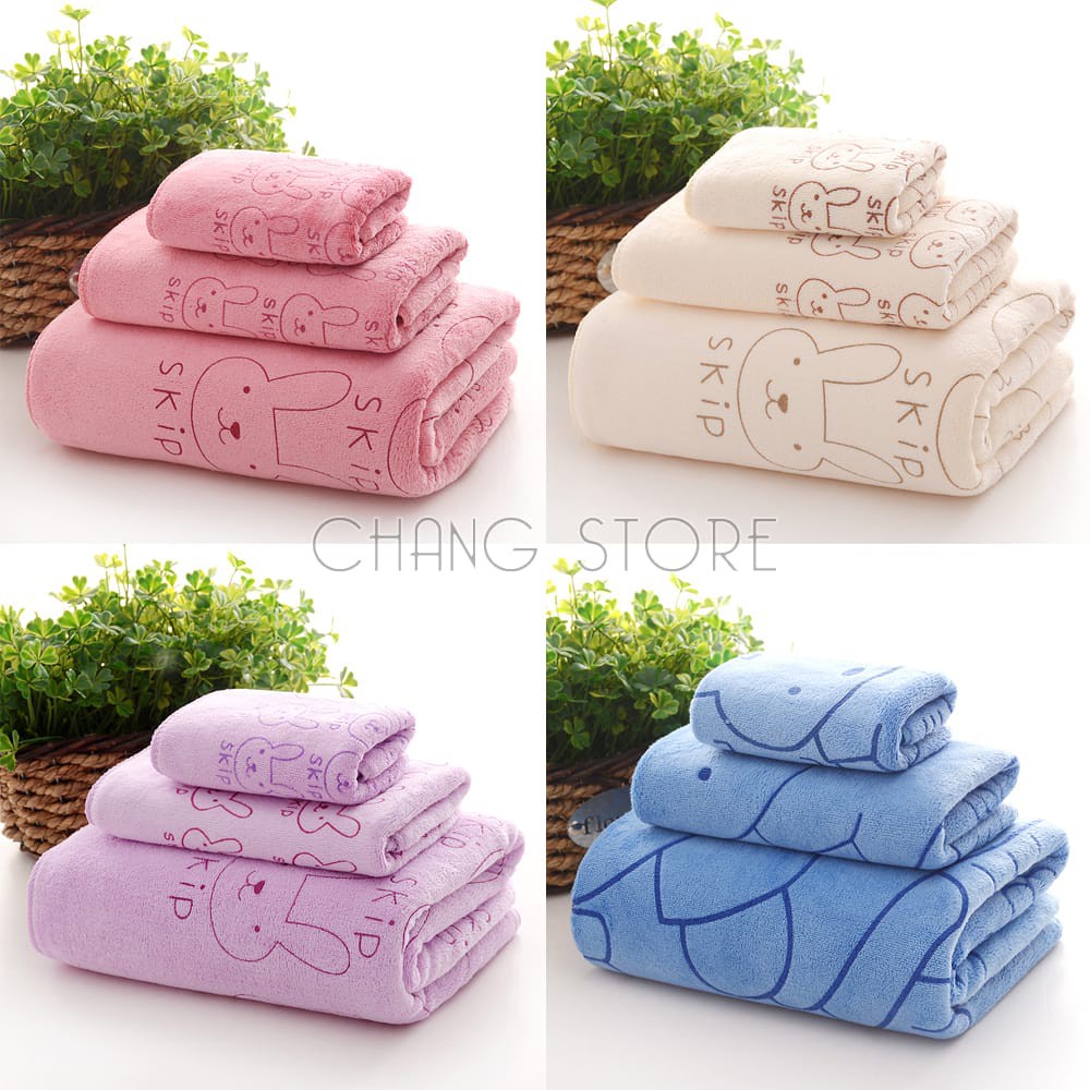 Bộ 3 Khăn Tắm Lau Tóc mềm mại, khả năng thấm hút, kháng khuẩn tốt