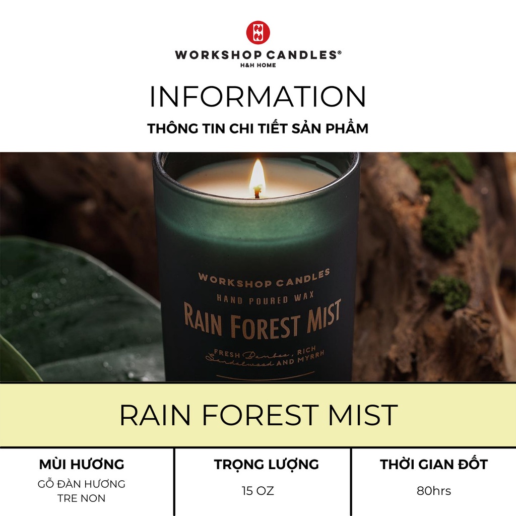 Nến thơm Rain Forest Workshop Candles H&H Home 15 oz hương gỗ cao cấp