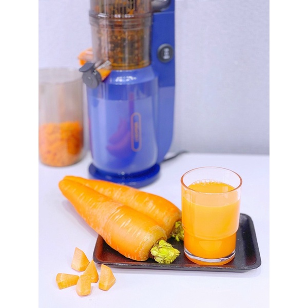 - 50rpm: tốc độ vòng quay của máy. Chậm dãi để ép tối đa từng giọt dinh dưỡng bên trong rau quả