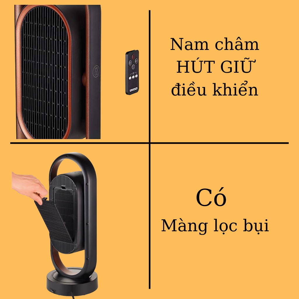 - Quạt sưởi gốm 3D Keramik Unold có điều khiển từ xa có từ tính. Màu đồng/đen thanh lịch, dễ chịu cho căn phòng nhà bạn