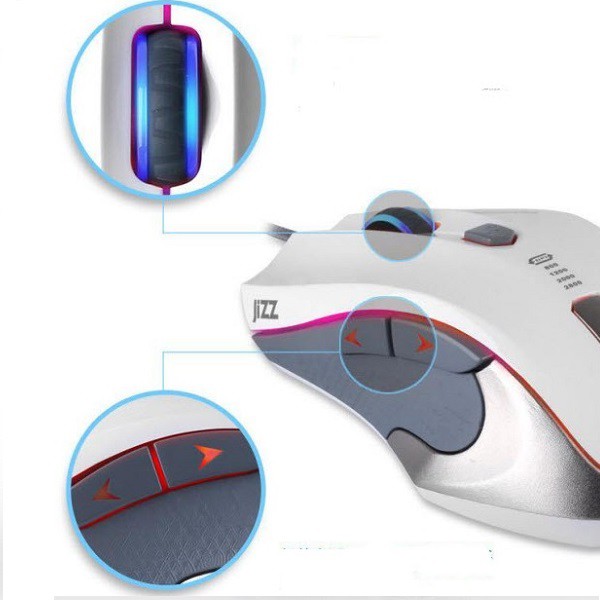 Mặt trên của chuột G1850 có một nút bấm để điều chình độ nhạy chuột có 4 mốc để bạn có thể điều chỉnh là 800/1200/2000/2800. Không những thế chuột game jizz g1850 còn có đèn led có thể đổi màu mỗi khi bạn thay đổi độ nhạy chuột.