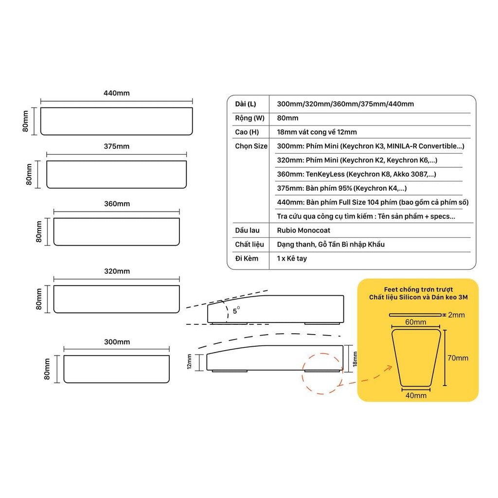 Sản phẩm kê tay tạo điểm tựa, giảm áp lực cho cổ tay, tránh sai tư thế, được thiết kế tỉ mỉ với góc bo mềm mại, bề mặt vát 5 độ đem lại cảm giác thoải mái khi làm việc nhiều giờ liền.