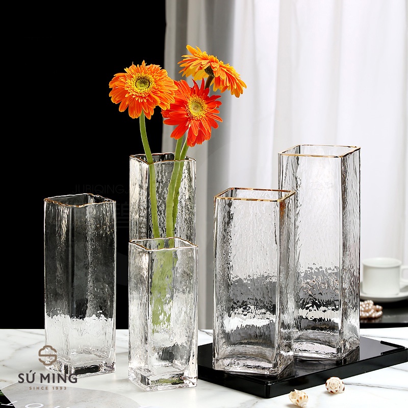 Nhà cửa & Đời sống > Trang trí nhà cửa > Bình trang trí || [Mã LIFE2403ALL giảm 10% đơn 50K] Lọ Hoa Thuỷ Tinh Vân Viền Vàng, Cao Cấp, Phong Cách Độc Đáo.Còn hàng