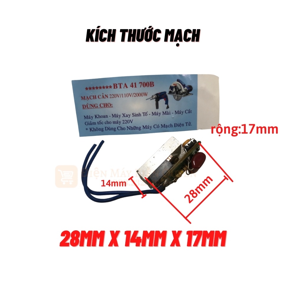 - Mạch cản đơn 2000W đổi nguồn 220V ra 110V 100V chỉ dùng cho tải sợi đốt, áp dụng công nghệ điện tử sử dụng Triac BTA41 700B với kích thước siêu nhỏ có thể gắn trực tiếp vào trong thiết bị, ứng dụng cho các thiết bị nội địa có tải là dây mai so (Mayso) sử dụng điện 100V - 110V và giảm công suất tiêu thụ cho các thiết bị điện 220V.