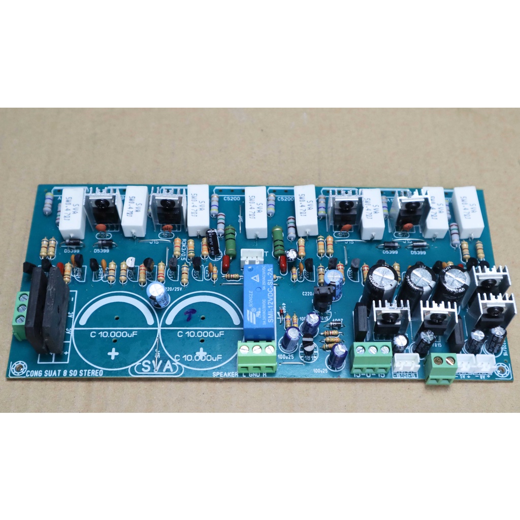 Mạch công suất 8 sò TOSHIBA 440W liền nguồn STEREO (2 kênh)Loại board này cho ÂM THANH HAY, TIẾNG SÁNG, BASS CHẮC hỗ trợ cả nguồn 15v đối xứng cho các mạch âm sắc như master, music, echo...