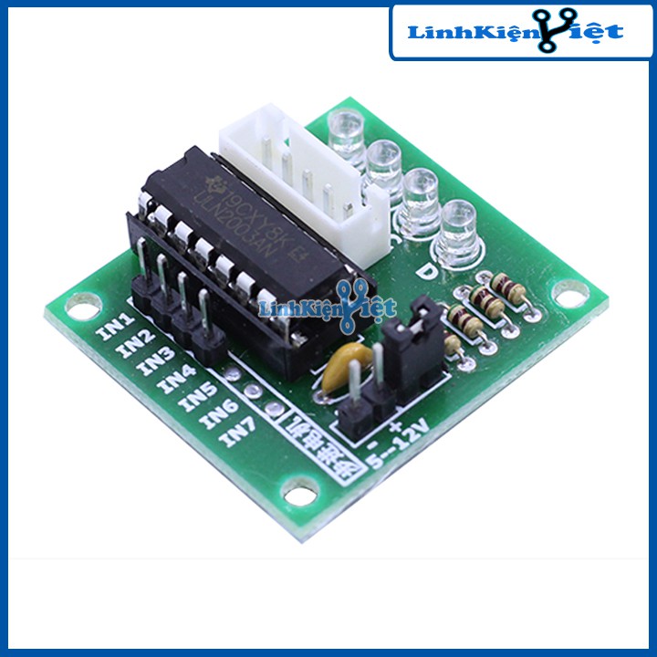 Mạch Điều Khiển Động Cơ Bước ULN2003 + Động Cơ Bước 5VMạch Điều Khiển Động Cơ Bước ULN2003 + Động Cơ Bước 5V với ưu điểm nhỏ gọn, có sẵn mạch đệm cho động cơ, thích hợp dùng cho những ai mới làm quen với động cơ bước, từ đây sẽ hiễu rõ hơn về cấu tạo cũng như phương thức điều khiển của động cơ. Mạch sử dụng IC ULN2003A để khuyếch đại các tín hiệu điều khiển từ mạch điều khiển và điện áp sử dụng cấp cho động cơ có thể lên đến 15V.