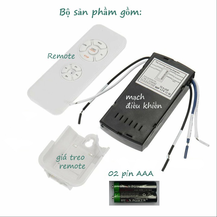 + Bộ điều khiển quạt trần ( bộ đầy đủ remote + mạch+ 2 pin AAA)