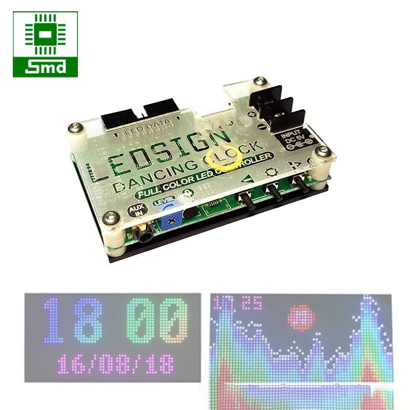 Mạch Đồng Hồ LED Nháy Theo Nhạc Đa Sắc có thể kết nối đến các tấm LED matrix full color có độ phân giải 64x32 pixels hoặc ghép nối 4 tấm có độ phân giải 32x16 pixels.
