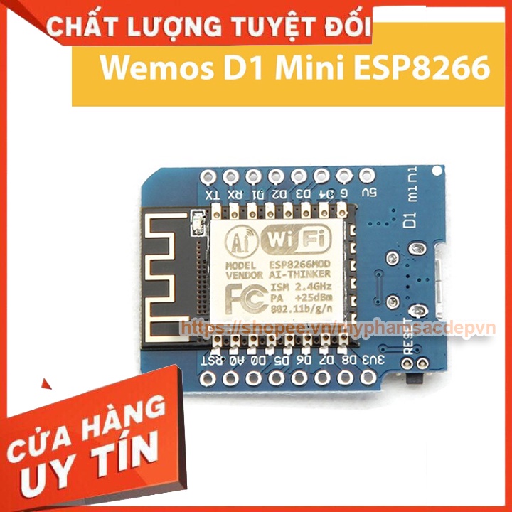 - WeMos D1 Mini là board mạch được phát triển dựa trên Module Esp8266-12S, là thiết bị nhỏ gọn được tích hợp Wifi để dễ dàng kết thực hiện các ứng dụng thu thập dữ liệu và điều khiển thiết bị thông qua Wifi . Đặc biệt nó có rất nhiều shield hỗ trợ cho việc học tập và làm việc.