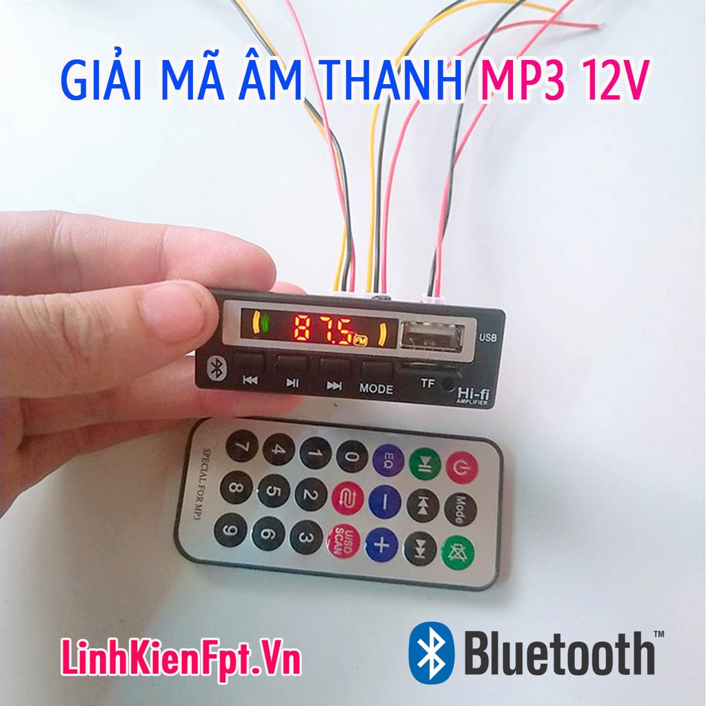 Mạch giải mã MP3 USB/TF/AUX/Bluetooth 7-12VDC có chức năng giải mã tín hiệu từ USB hoặc thẻ nhớ hoặc sóng FM sau đó khuếch đại ra âm thanh 2 kênh, với công suất mỗi kênh từ 3 - 5W.