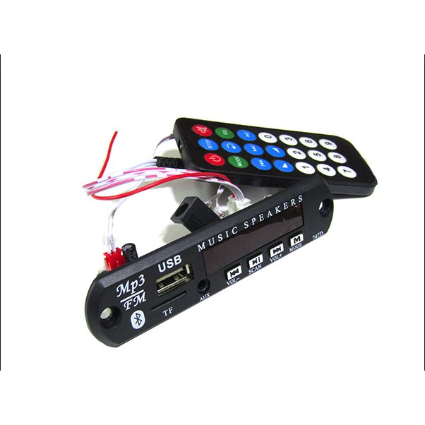 Mạch giải mã MP3 USB/TF/AUX/Bluetooth 7-12VDC có chức năng giải mã tín hiệu từ USB hoặc thẻ nhớ hoặc sóngFM sau đó khuếch đại ra âm thanh 2 kênh, với công suất mỗi kênh từ 3 - 5W.