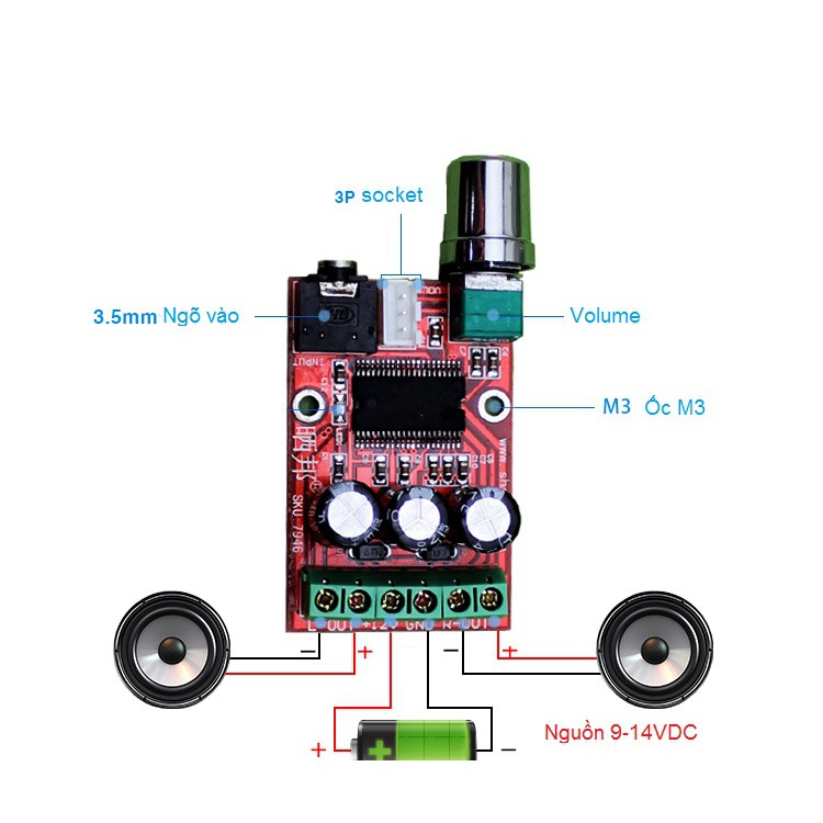 . Mạch khuếch đại âm thanh chip YMH138. Nguồn sử dụng: 9-14VDC (ổn định ở mức 12V2A)