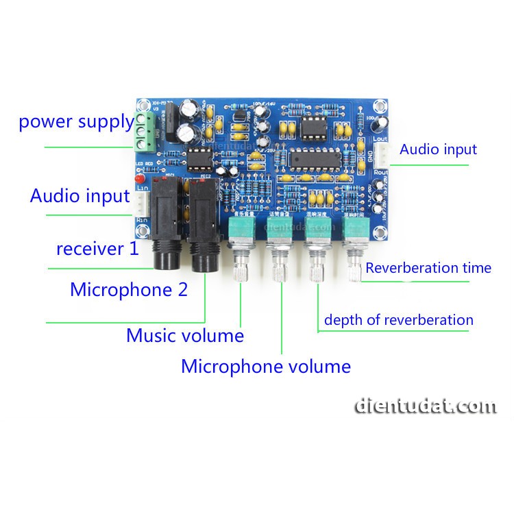 Điều chỉnh được âm lượng nhạc, âm lượng micro, echo bằng chiết áp trên mạch