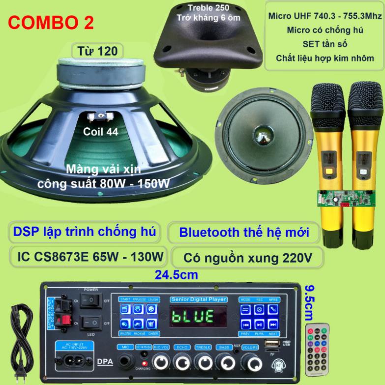 Mạch loa kéo 3 tấc đơn 3 đường tiếng DSP lập trình chống hú IC CS8673E 130W có nguồn xung 220V micro đôi