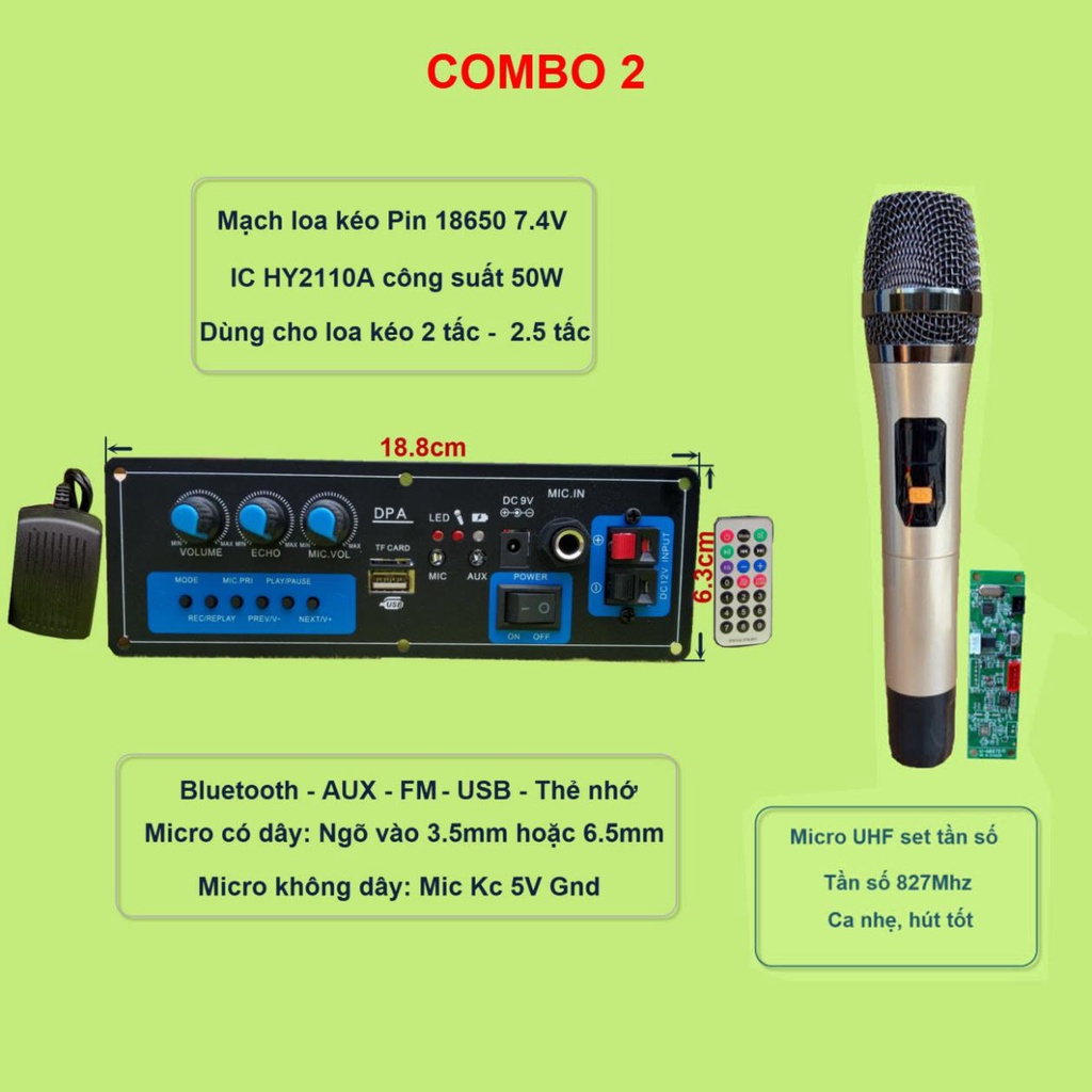 Máy tính & Laptop > Linh Kiện Máy Tính > Bo Mạch Âm Thanh || [Mã 253ELSALE hoàn 7% đơn 300K] Mạch loa kéo DPA dùng Pin 18650, sạc 5V - công suất 25W - 45W kèm micro UHF VHFCòn hàng