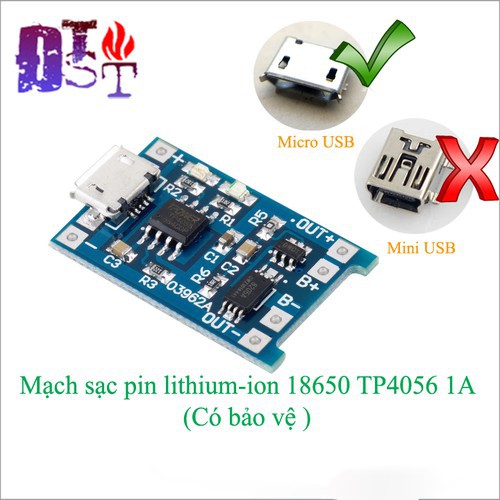 Thiết Bị Điện Gia Dụng > Pin || Mạch sạc pin lithium-ion 18650 TP4056 1A - Có bảo vệCòn hàng