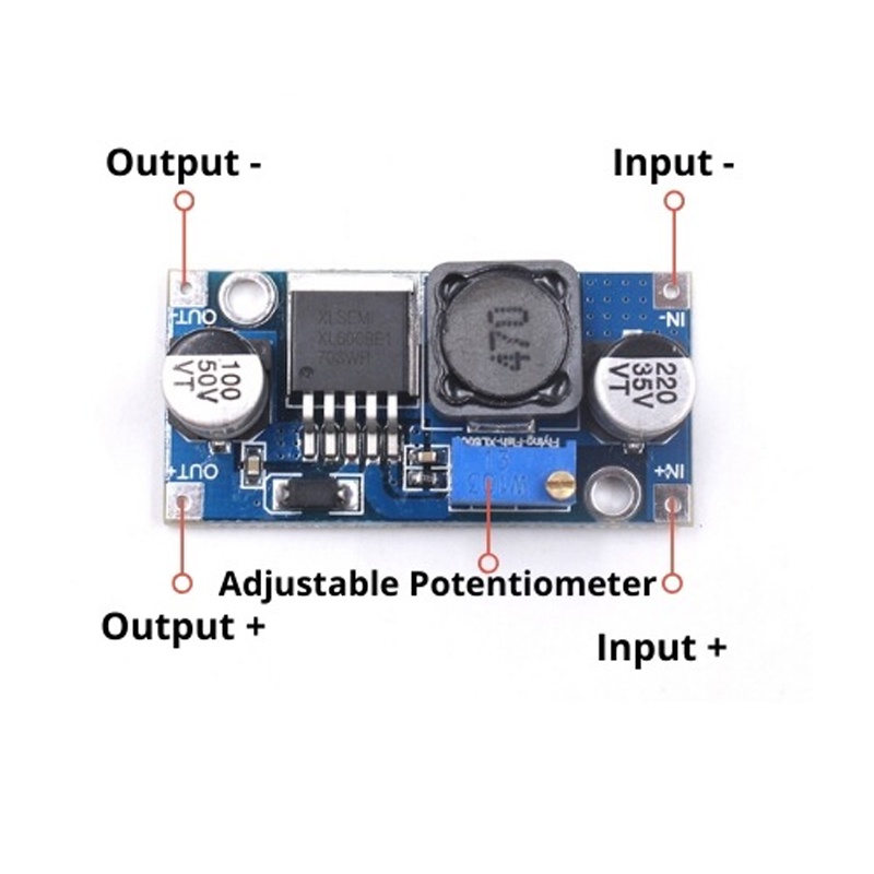 Mạch tăng áp 3A XL6009 có thể sử dụng như một phần trên mạch điện nhờ có 4 chân hàn xuống mạch. giúp phần nguồn dễ dàng thay thế sửa chữa.