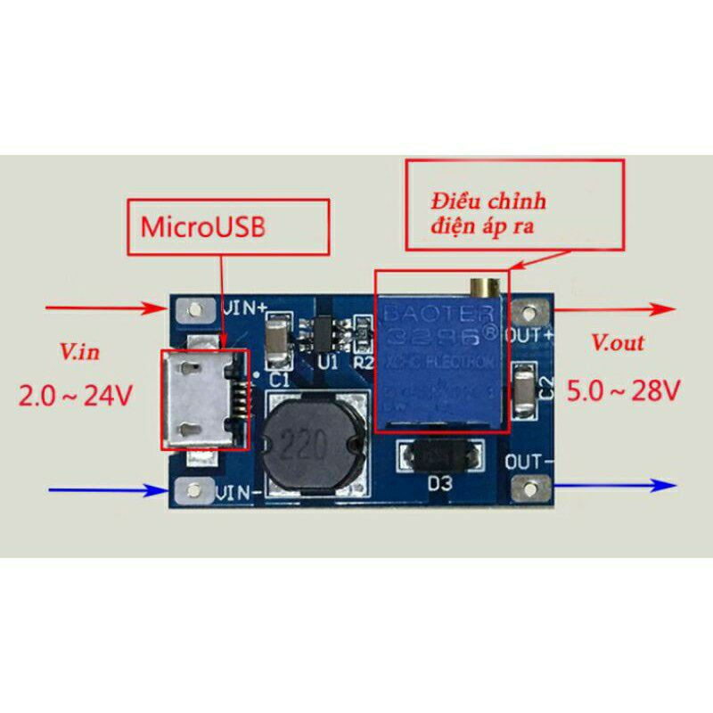 Máy tính & Laptop > Linh Kiện Máy Tính > Khác || Mạch Tăng áp (Boost) DC 2 - 20V sang 5 - 28V cổng Micro USBCòn hàng
