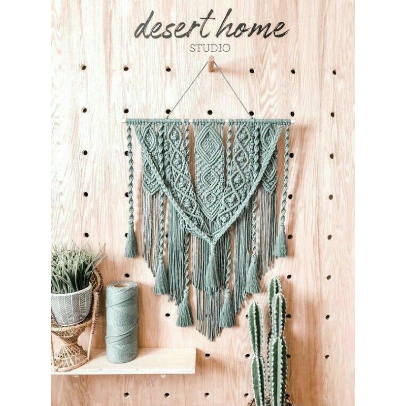 Macrame treo tường trang trí, decor không gian màu xanh xám