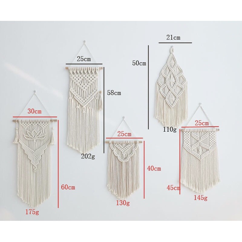 Macrame treo tường trang trí phòng ngủ, phòng khách phong cách decor vintage- Kích thước : (ảnh)