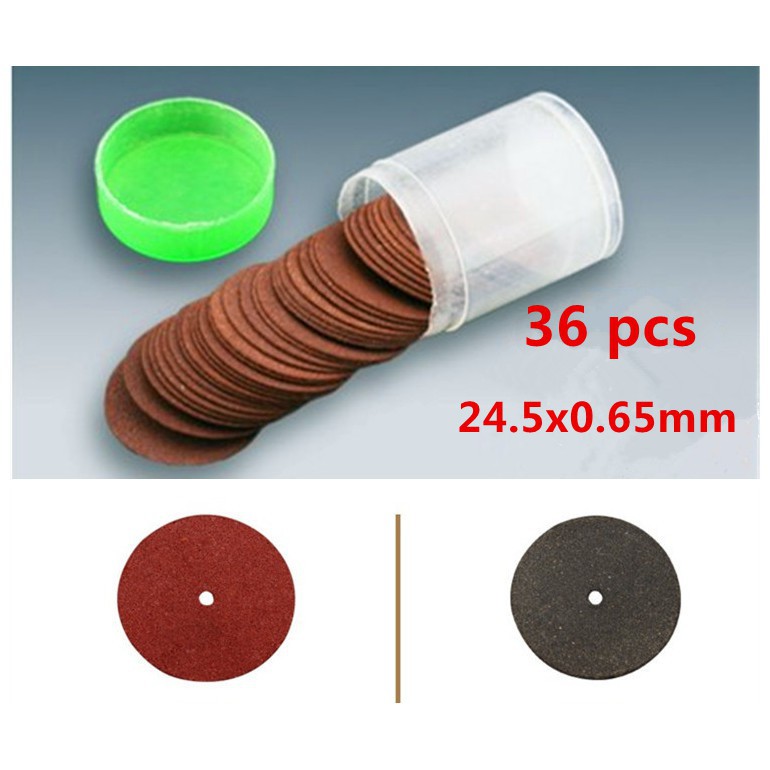 Quy cách đá mài: 24.5 x 0.65 mm, đường kính trong:2mmđá mài: 36 miếng/hộp