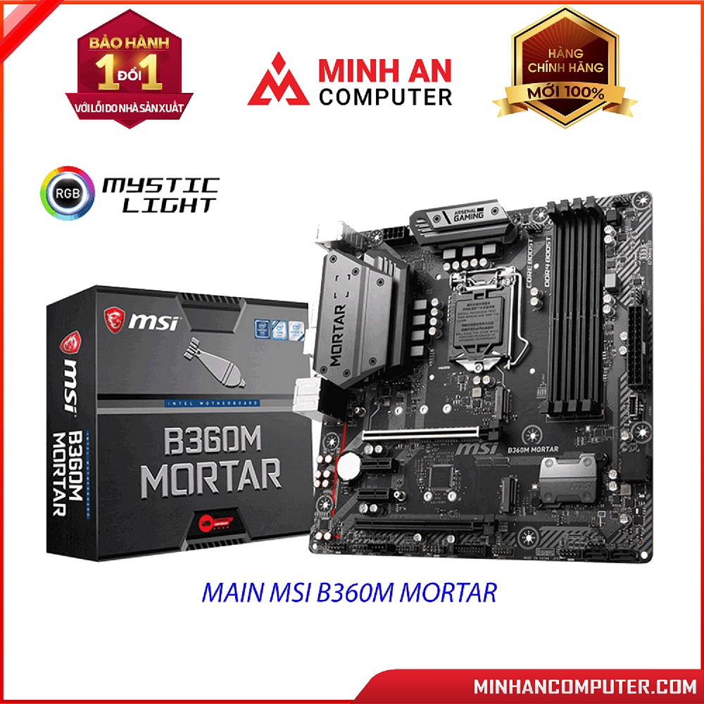 Máy tính & Laptop > Linh Kiện Máy Tính > Mainboard - Bo Mạch Chủ || Mainboard MSI B360M MORTAR (Intel B360, LGA 1151-v2, M-ATX, 4 khe RAM DDR4) - hàng new full box, bảo hành 36 thángCòn hàng