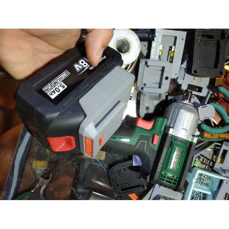 Ngàm chuyển cho máy Dekton để dùng với pin MAKlTA 18, dùng được với các máy brussless, các máy động lực như máy siết bulong DK-2140S, máy khoan DK-21BL...D21-M5635... dùng hệ pin PowerShare của Dekton.