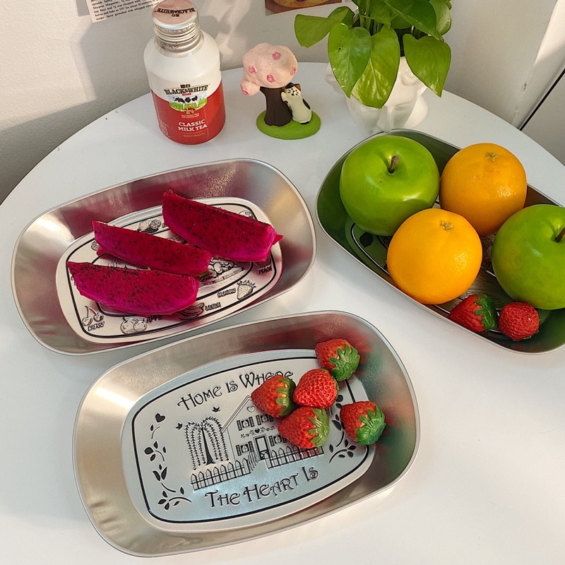 1 em đĩa thiếc size bự cực kì thích hợp để ăn trái cây, hoặc đựng gà rán, khoai tây chiên. 🍝🌭🍔Ngang 20cm - dài 14cm